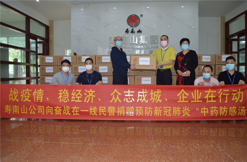 2020年3月3日上午,海南壽南山參業(yè)有限公司通過(guò)海南省醫(yī)藥行業(yè)協(xié)會(huì)向海南省公安廳、?谑泄簿值囊痪干警捐贈(zèng)了價(jià)值11.7萬(wàn)元的預(yù)防新冠肺炎“中藥防感湯”。省廳卜主任、市局陳主任、協(xié)會(huì)魯秘書(shū)長(zhǎng)、我司副總經(jīng)理戴初雄先生攜各部門(mén)經(jīng)理共同出席了捐贈(zèng)儀式。