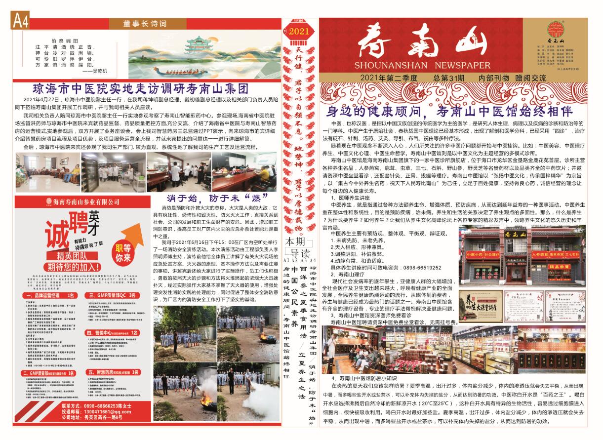 瓊海市中醫(yī)院實地走訪調(diào)研壽南山集團